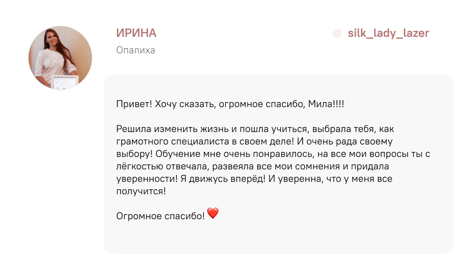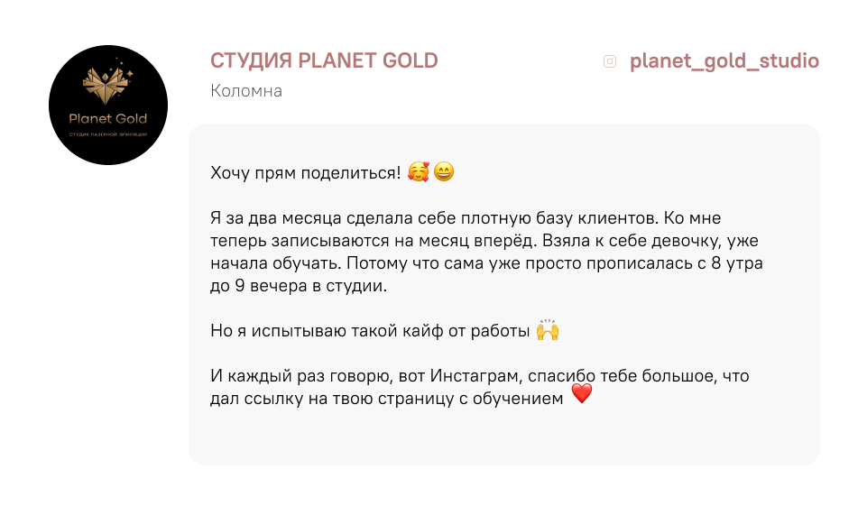 Основной вопрос моих учениц — как продвигаться? Я знаю, как достаточно быстро и эффективно сформировать личный бренд вашей новой студии, какие шаги предпринять для раскрутки своего профиля в инстаграм, чтобы вы могли находить клиентов за счет возможностей соцсетей.